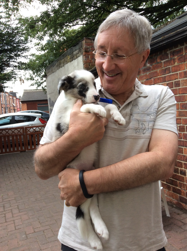 Grandad having a chat with her.