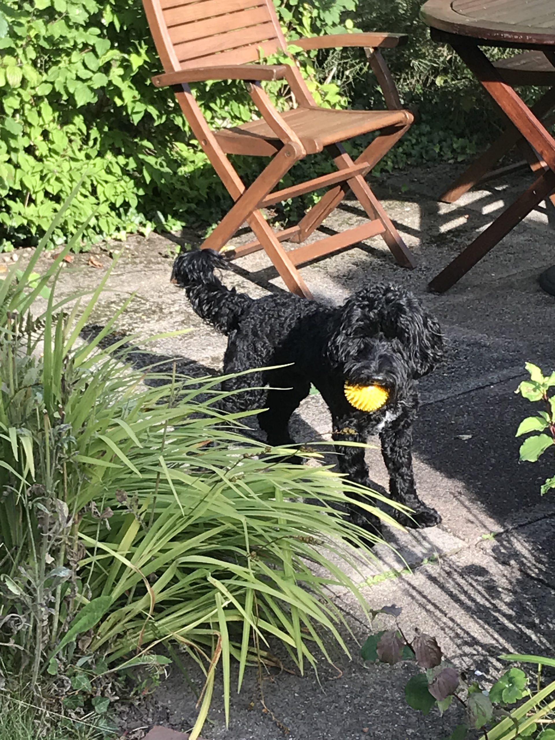 Alfie enjoying himself in the garden.